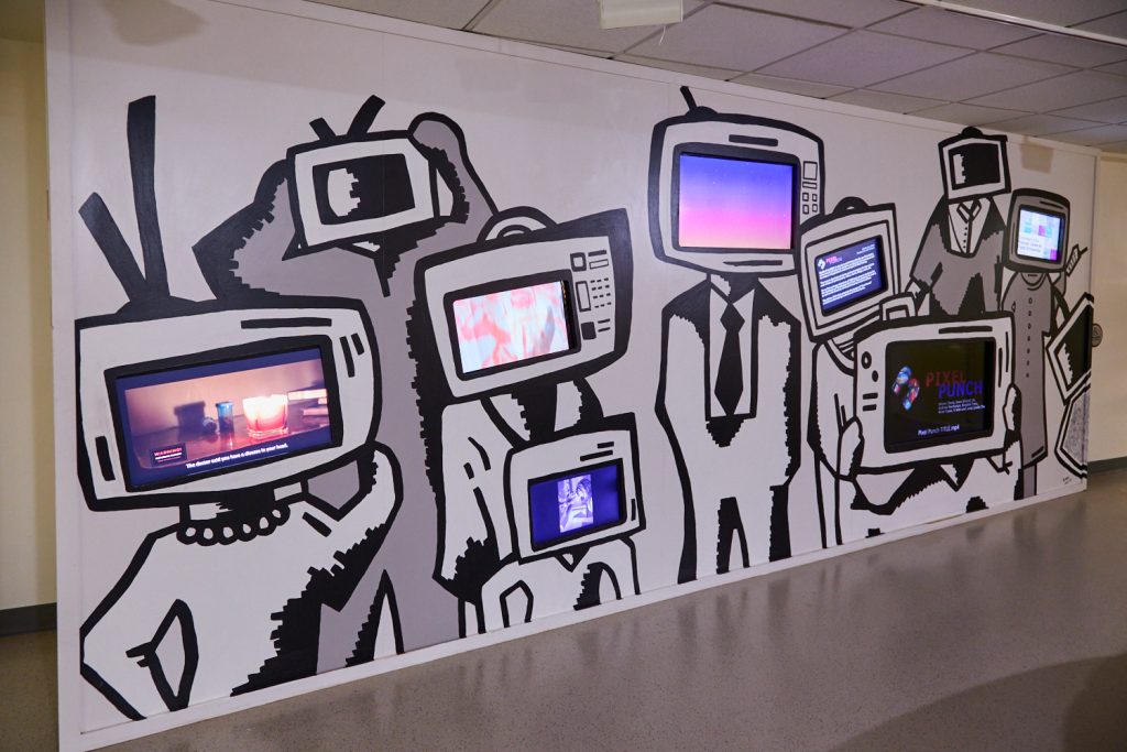Pixel Punch student exhibition on the Sherman Centre's media wall.