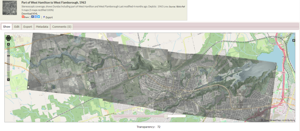 It is fun work. Say you have a picture; one an airplane took in the 1960s of the Hamilton & Burlington area. What can you see in the picture? Do you recognize certain streets? Can you see the waterfront or Jackson square? I get to use those kinds of landmarks to place the picture on top of today’s map and see how the area has changed over the years.